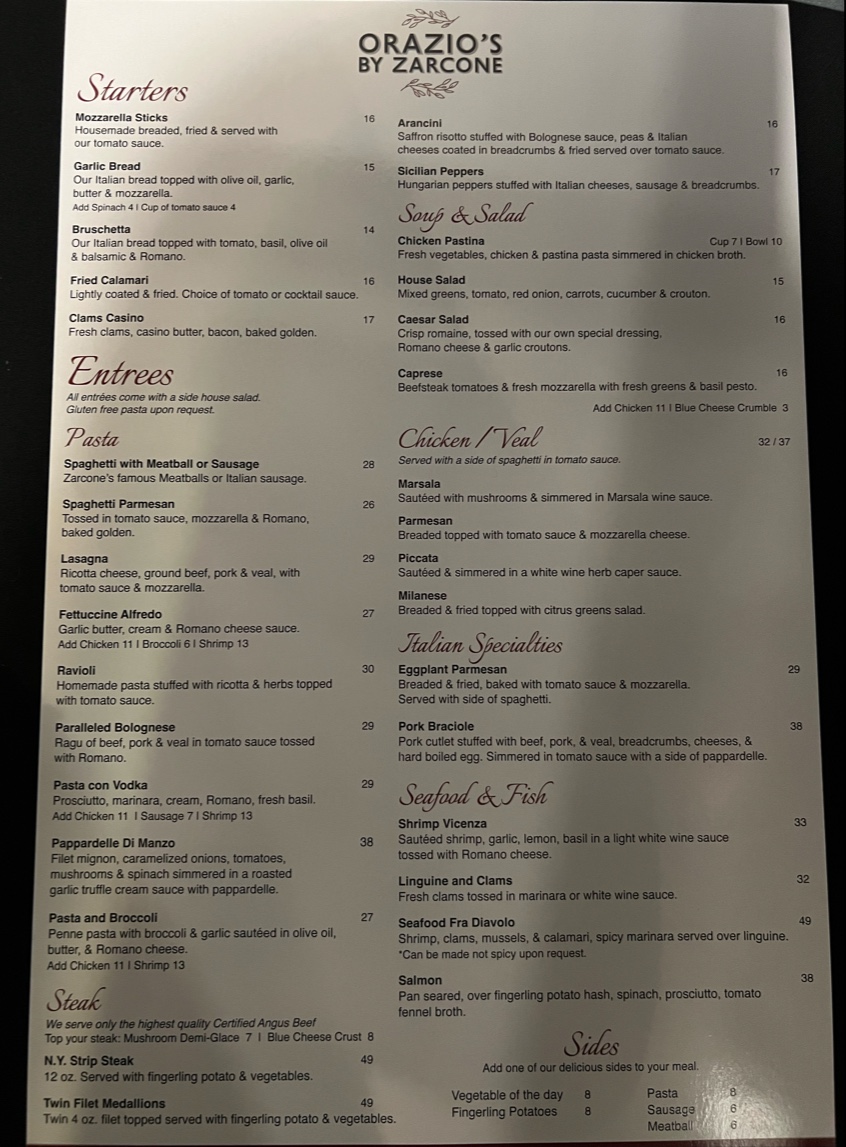 Whether it's a family gathering or a romantic date night, Orazio's serves delectable food in a warm, welcoming environment. Come experience their mouthwatering dishes and leave with unforgettable memories!