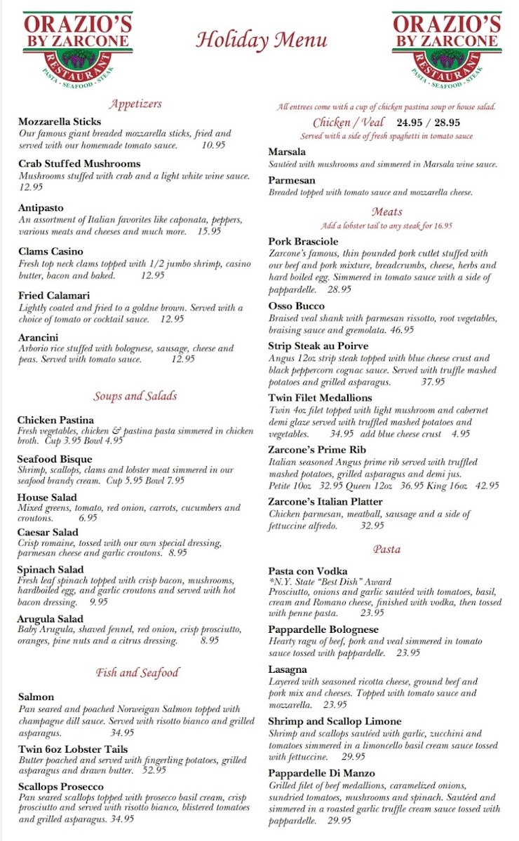 Welcome to Orazio's by Zarcone Restaurant, located at 9415 Main St, Clarence, NY. This culinary gem promises an authentic Italian dining experience that captivates both the palate and the senses.